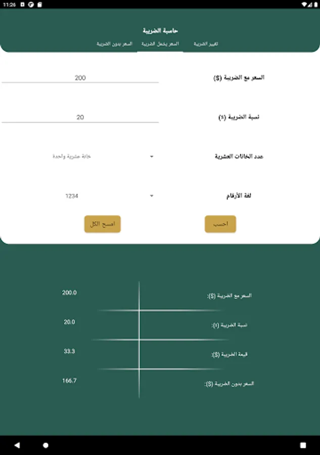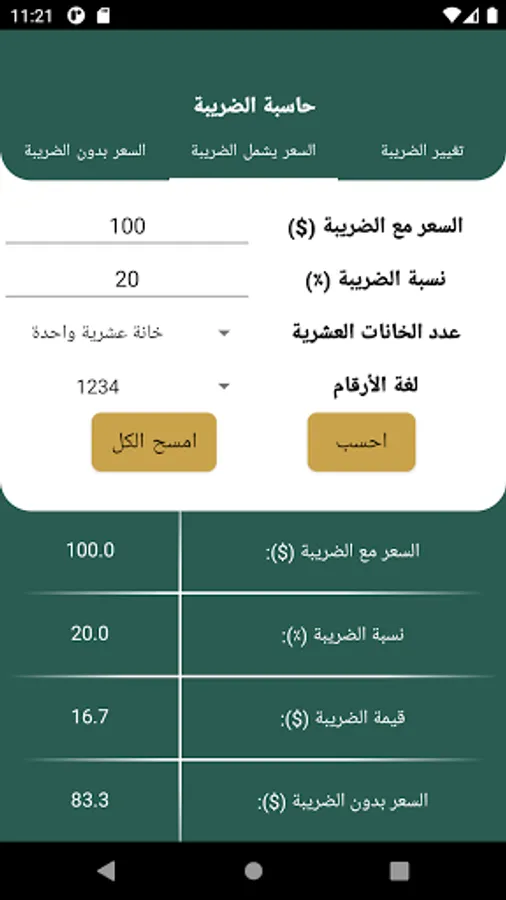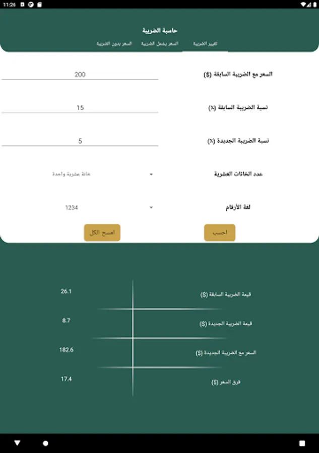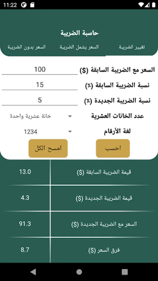 Calculate the value of the tax is easy and smooth and without complexity. The program is designed to calculate the VAT value, the selective value of tax or other tax.