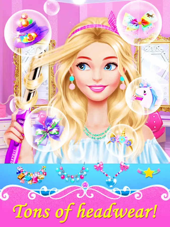 Once your character's hair is ready for styling, use our true-to-life hair tools to create a stunning hairstyle. You can cut, curl, or straighten their hair, and even add some color spray for a fun pop of color. Don't forget to choose from our wide selection of fancy headwear, necklaces, and earrings to complete the look.