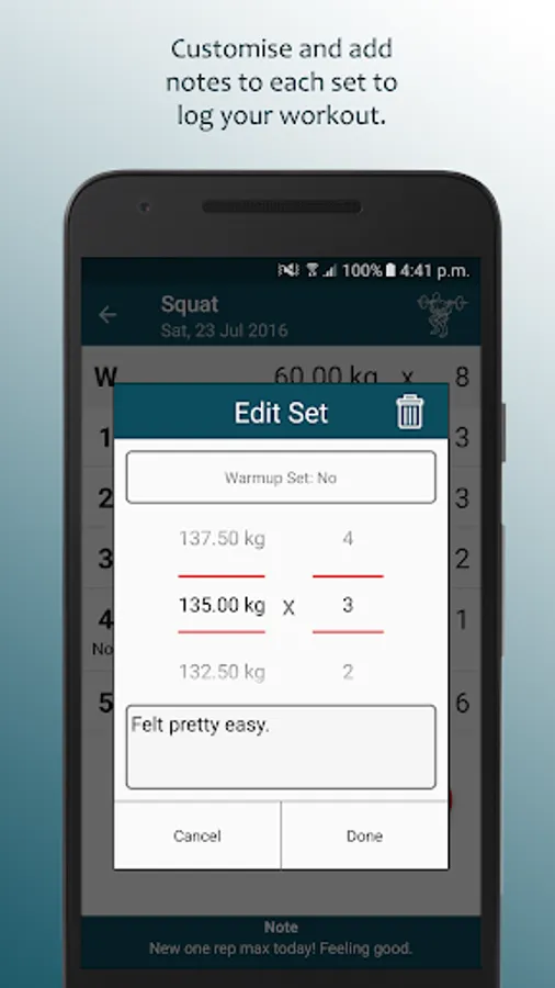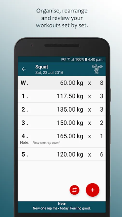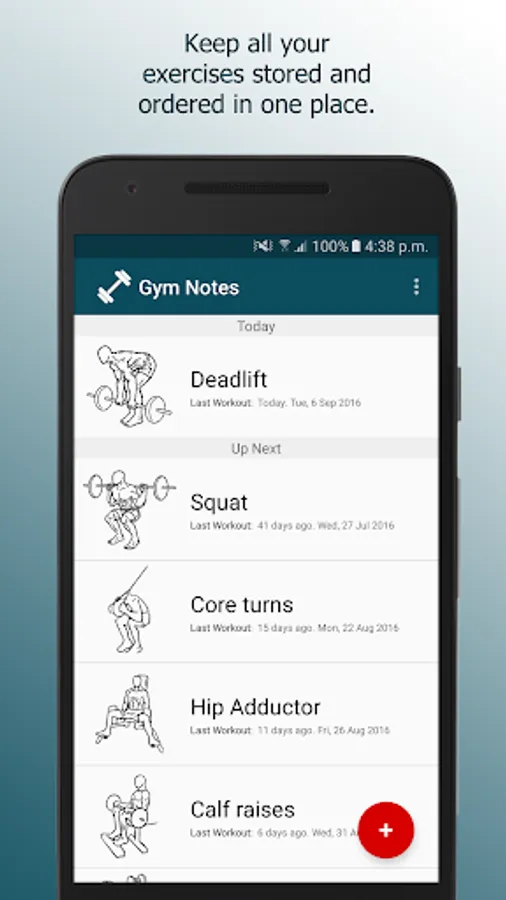 - Neatly and simply store every set within its workout, and every workout within its exercise.