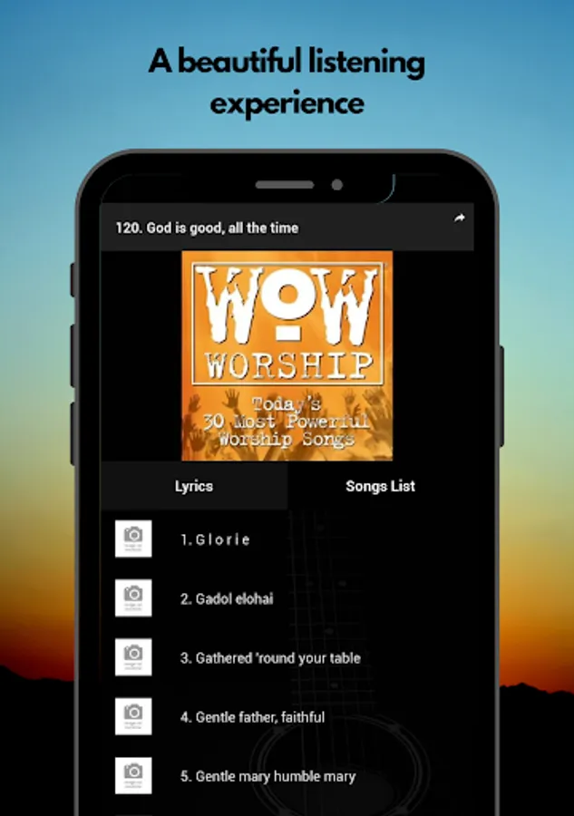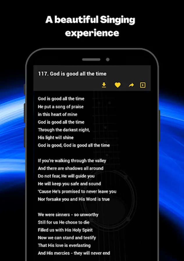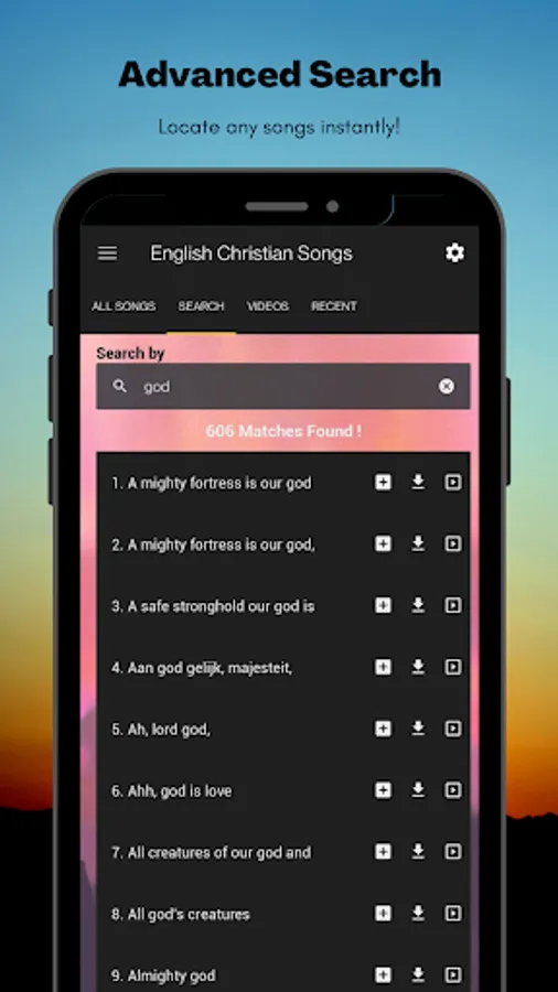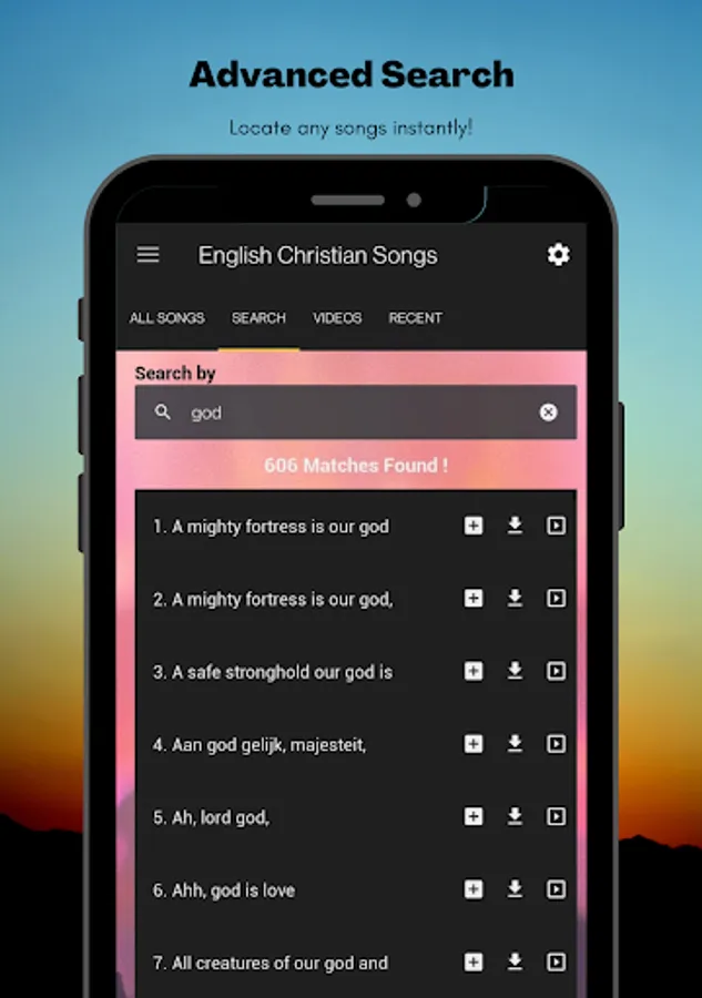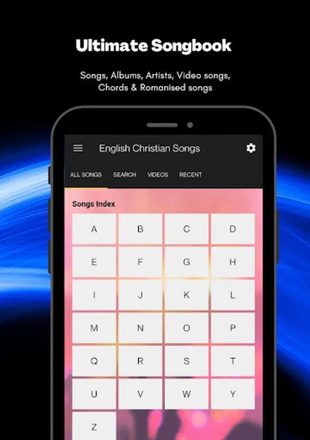 English Christian Songs Lyrics application is a collection of Christian Song lyrics. This app helps you to carry the English christian songbook in your pocket. It includes around 8000 songs. If you have any specific songs to be added or have songs in soft copy please contact the me. God Bless you all. Share your comments and suggestions to improve this application.