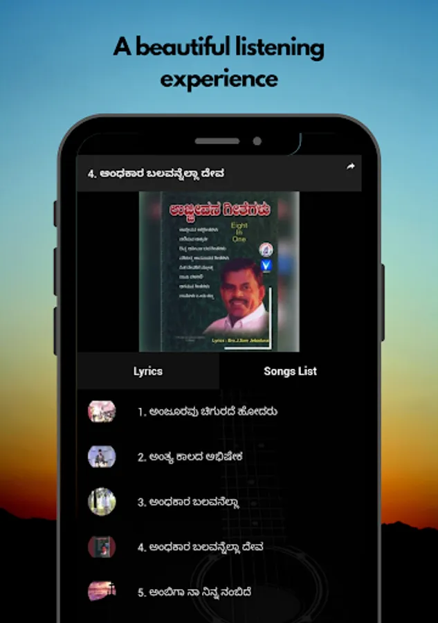 Christian Haadugalu (aka "ಕ್ರಿಶ್ಚಿಯನ್ ಹಾಡುಗಳು") app is an offline electronic version of Kannada Christian Songs Lyrics.
