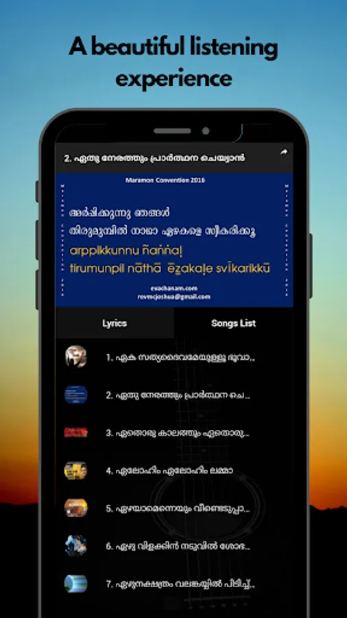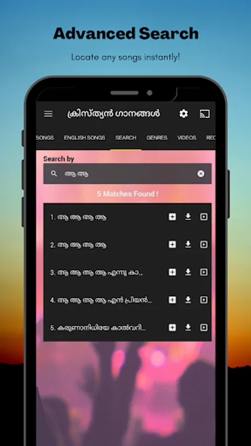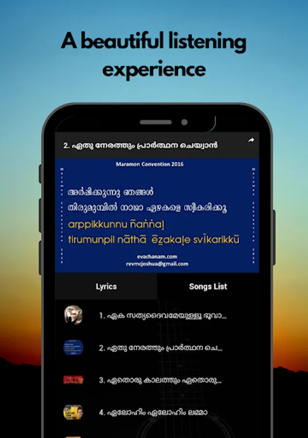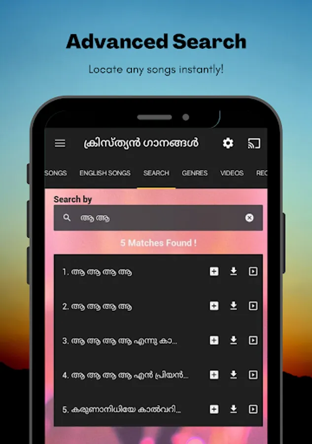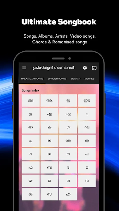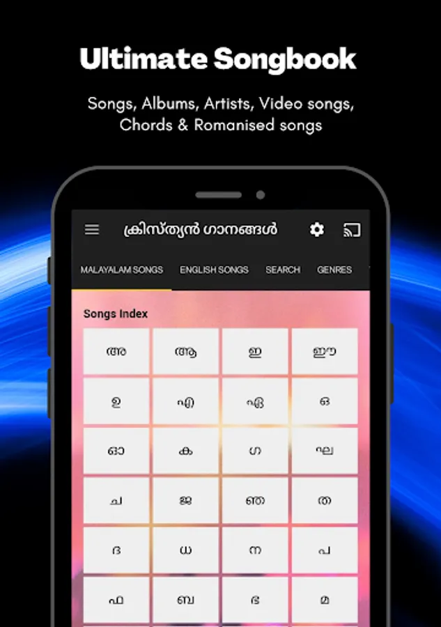 Kristyan Gānaṅṅaḷ (aka "ക്രിസ്ത്യൻ ഗാനങ്ങൾ") app is an offline electronic version of Malayalam Christian Songs Lyrics
