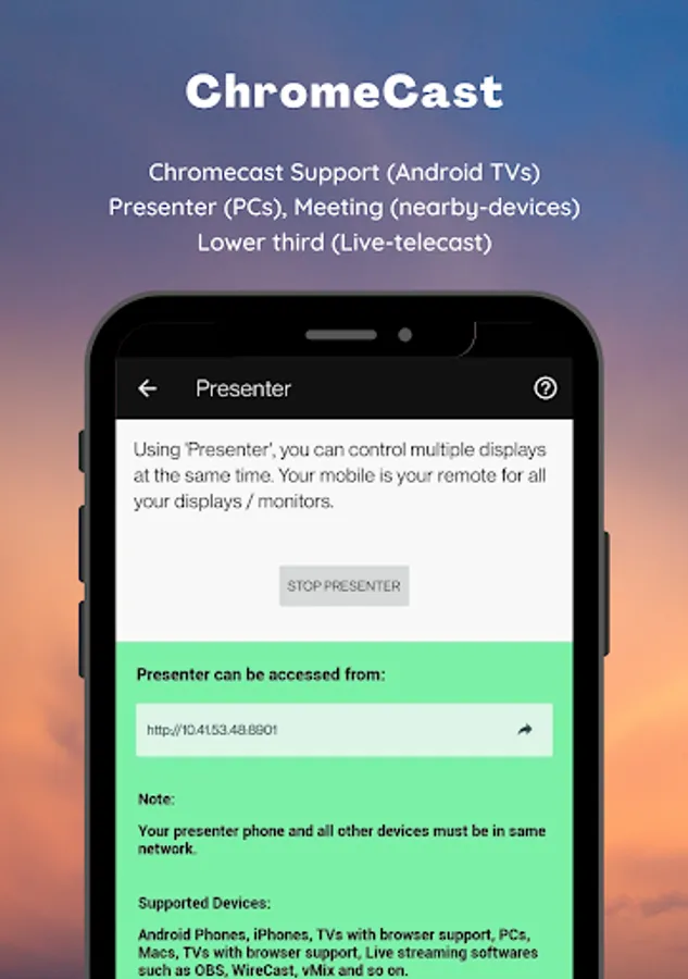 - Presenter Tool (for live streaming, projection on bigger screens / displays and so on)