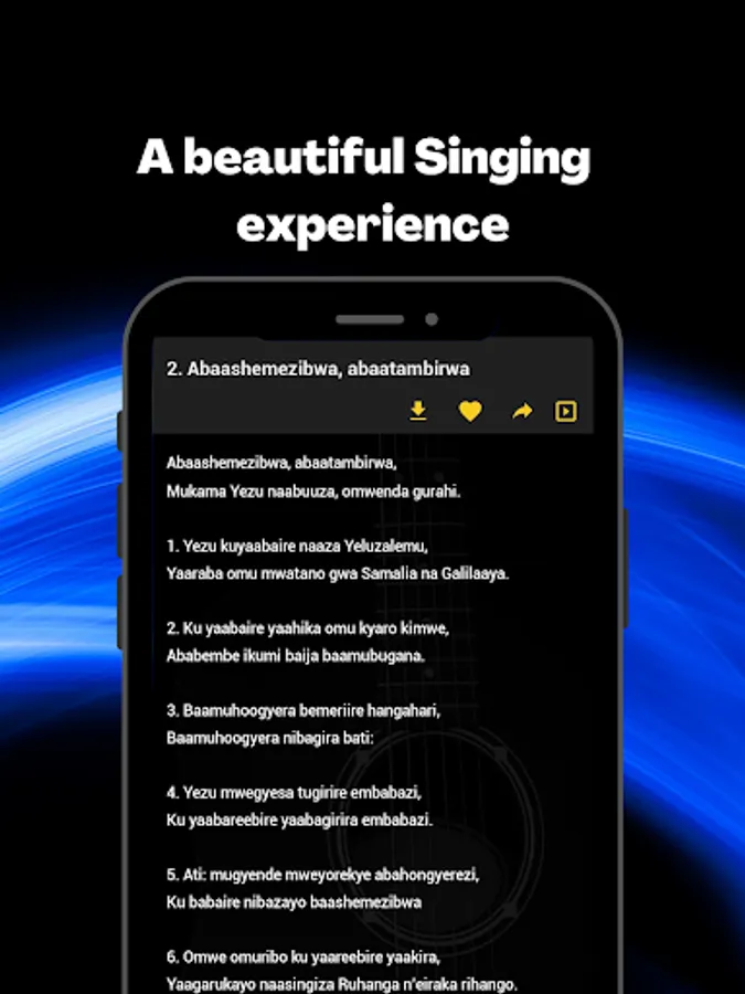 Runyankore Christian Songs app is an offline electronic version of Runyankore Christian songs lyrics.