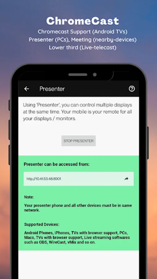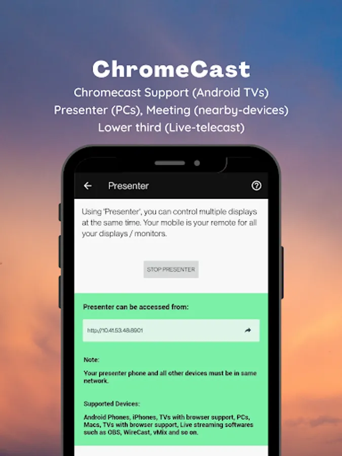 - Presenter Tool (for live streaming, projection on bigger screens/displays, and so on)