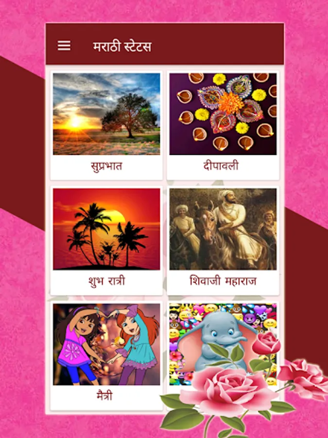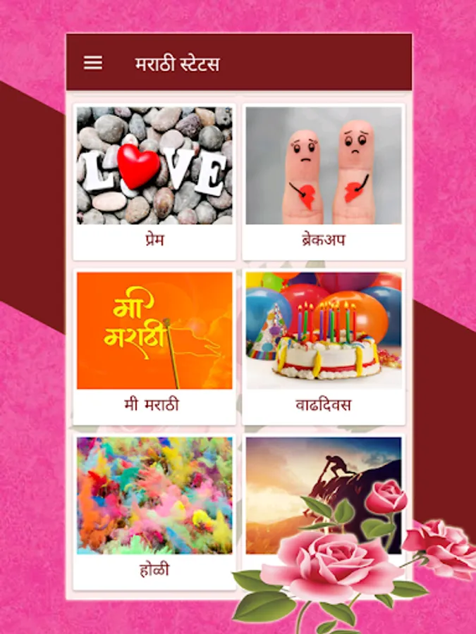 Marathi Status(मराठी स्टेटस) Application is contain large collection of Status or Message in Marathi Language.