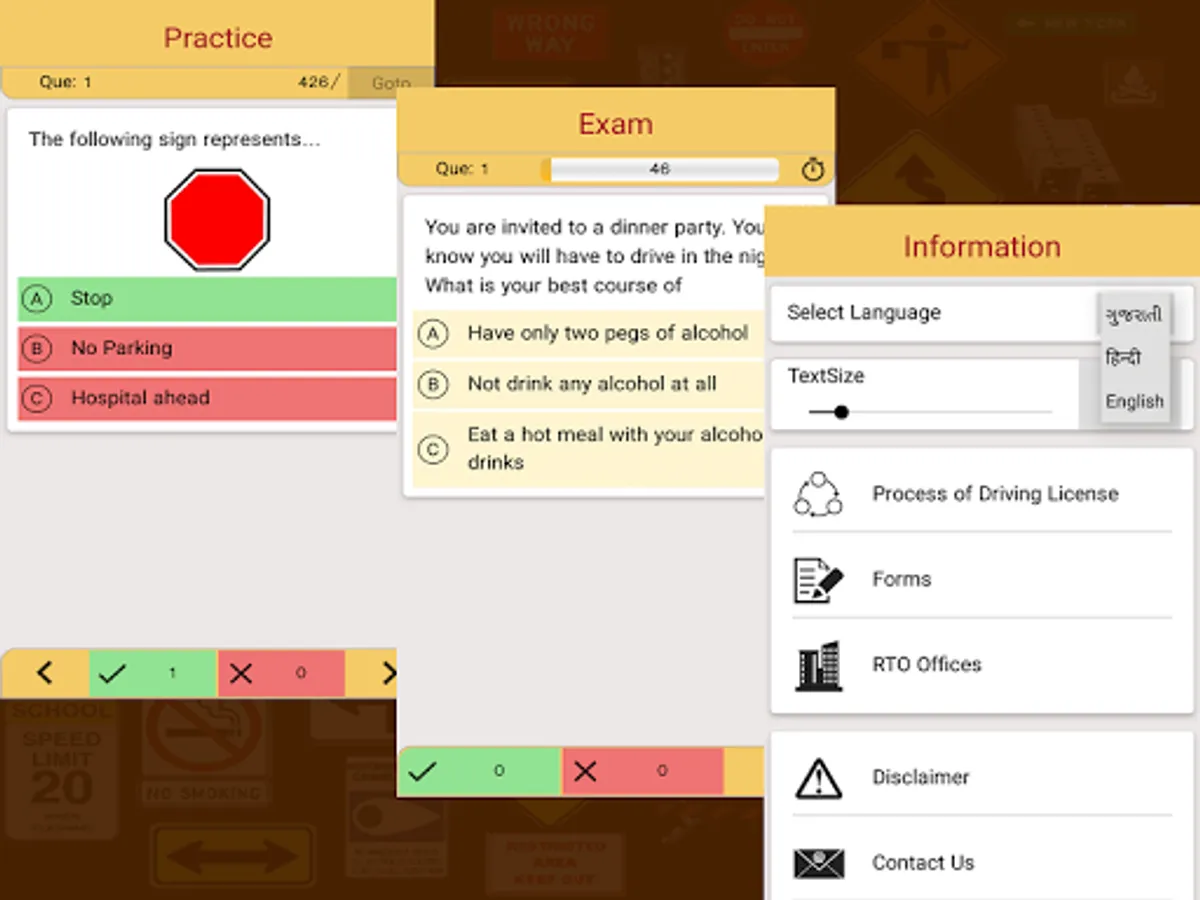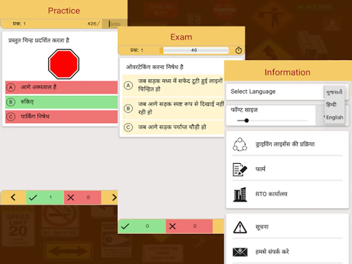 RTO Exam App is very useful to obtain driving license from RTO within Gujarat, App is available in Gujarati, Hindi and English language.