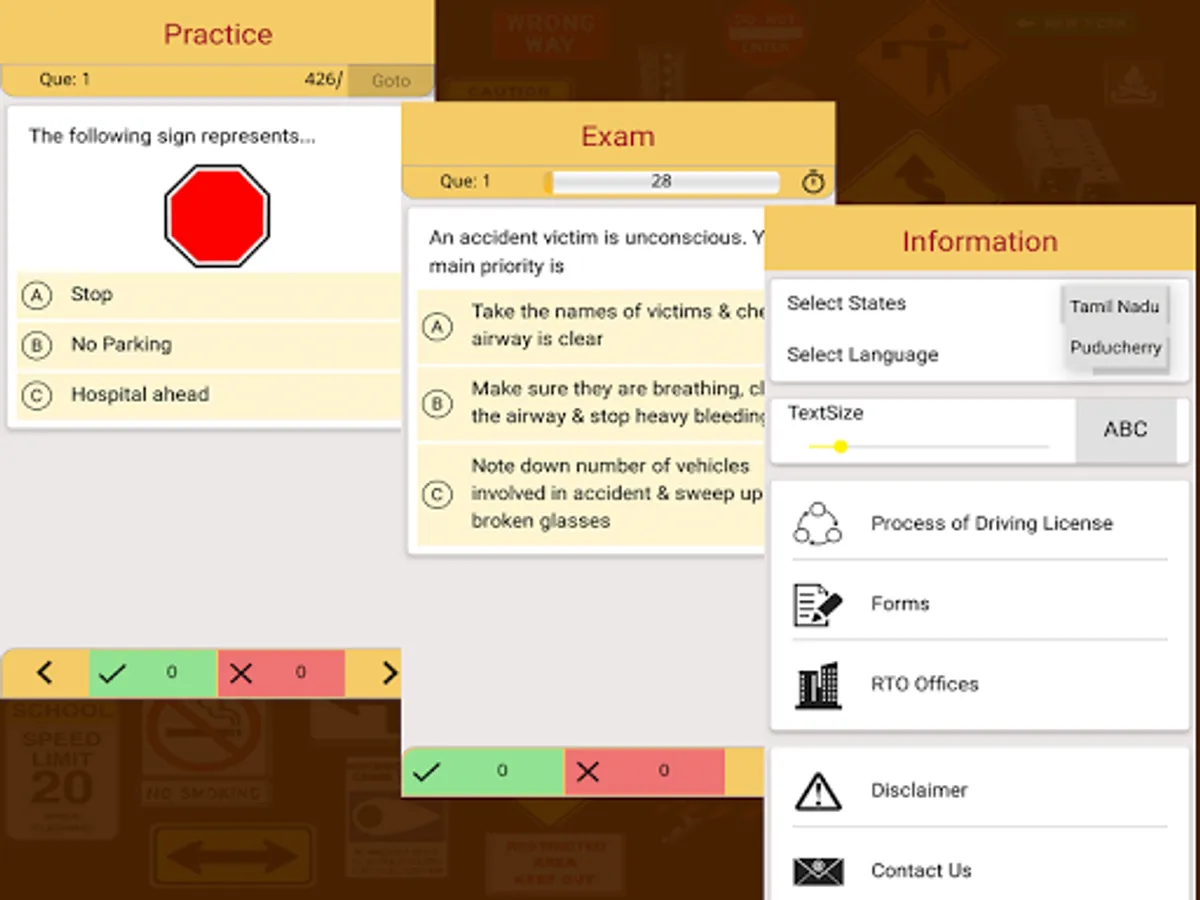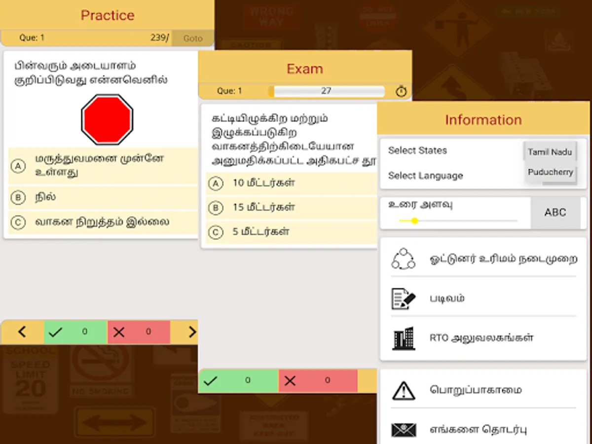 RTO Exam App is very useful to obtain driving license from RTO within Tamil Nadu and Puducherry, App is available in Tamil and English language.