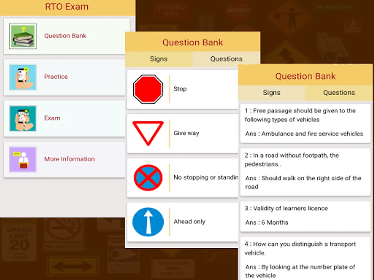 All RTO Office conduct theory exam of driving license on computer base.It is also useful for Learning License of Light Motor Vehicle (LMV), Heavy Motor Vehicle (HMV).Here we have give two mode Learning and Test mode for you to be aware about RTO exam and remove fear of failing and pass your RTO Driving license Test with full confidence .