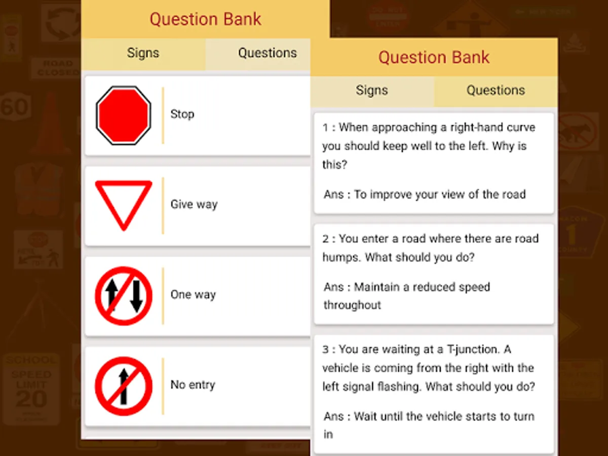 Exam : This exam is only for preparation, random questions and road signs related questions will be asked in this exam with time limit.