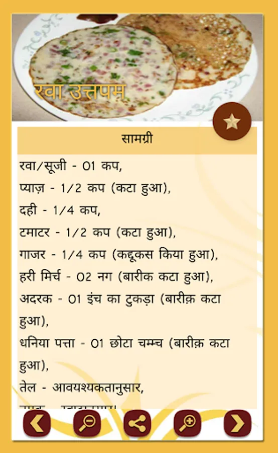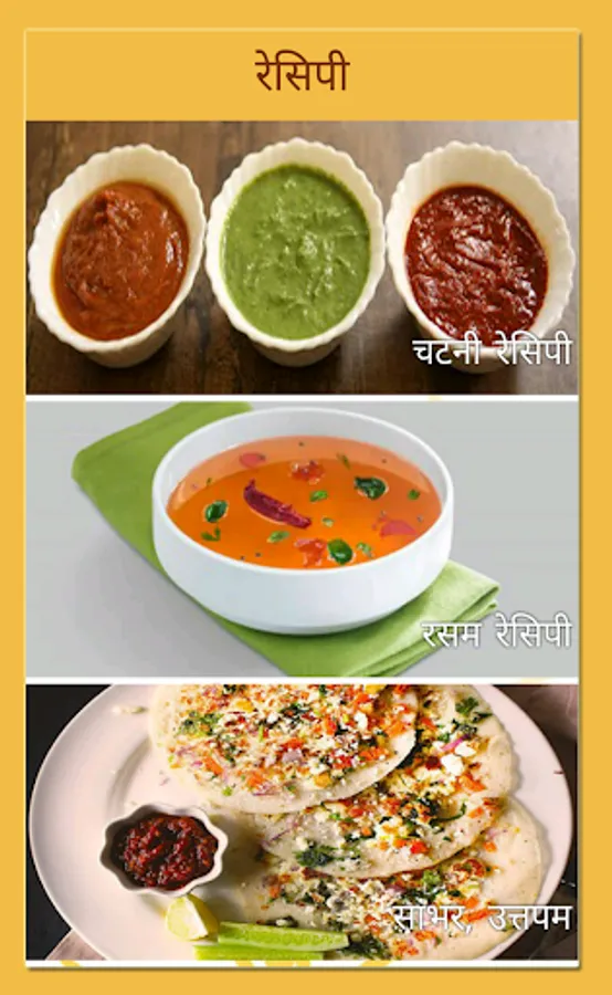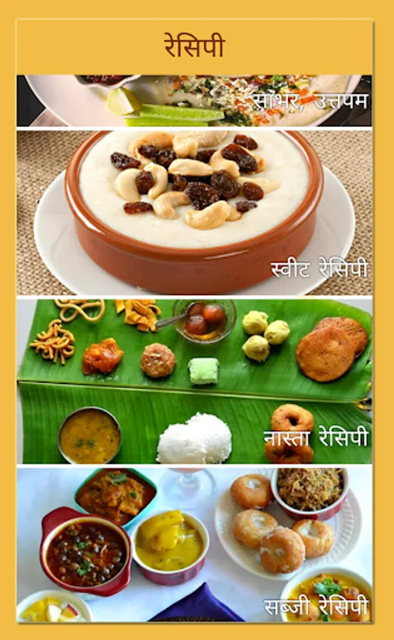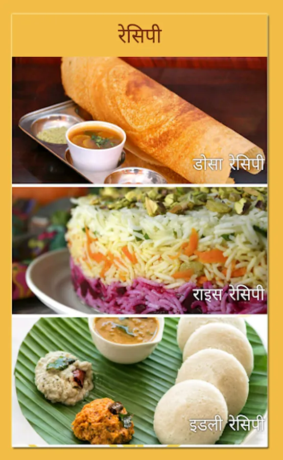 South Indian Recipes (साउथ इंडियन रेसिपी - दक्षिण भारतीय व्यंजनों ) application provide large collection of South Indian Recipes in Hindi Language. Using this application you can easily learn, how to make South Indian Recipes varieties at home.