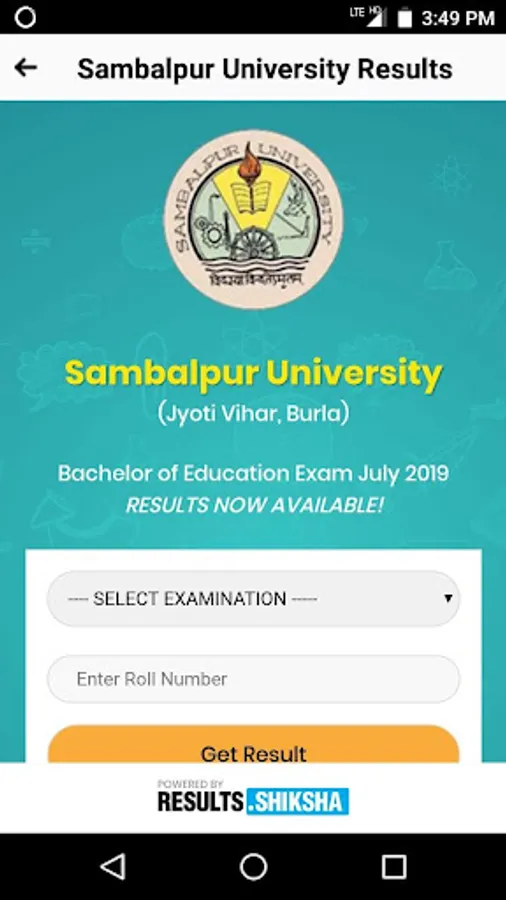 This is the Official Mobile Application for accessing the Examination Results of Sambalpur University (Jyoti Vihar, Burla), Odisha. The Mobile App is powered & presented by www.results.shiksha & www.odisha.shiksha - a part of Pan India Internet Private Limited (PIIPL) in association with the Sambalpur University (Jyoti Vihar, Burla), Odisha. Download the Sambalpur University Results instantly from this mobile application, keep a copy of your marksheet, share it with your friends & family using Social Media etc.