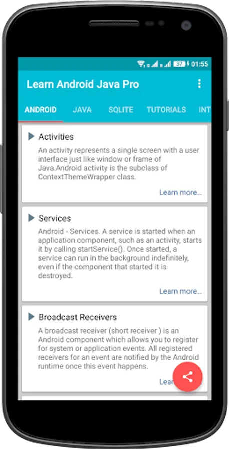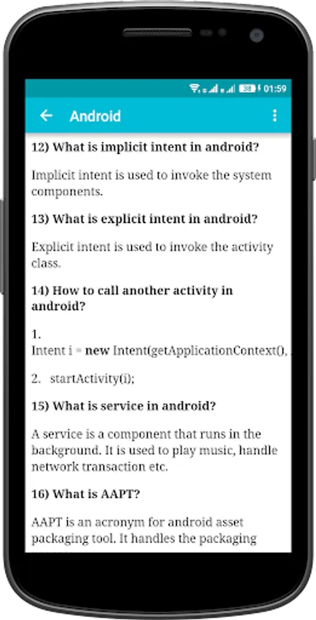 This Application provides an introduction to Android with SQLite Database and Java Programming and allows someone with a basic knowledge of programming to start creating Android Applications. It is a light course to cover fundamentals of Android.