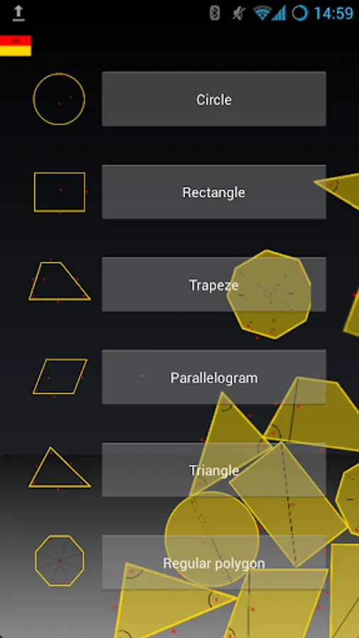 With the app, different forms such as solving (Triangular, trapezoidal, square, circle, ...)