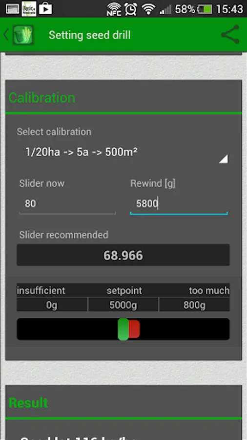 Fertilizer spreading: Calculate the amount included Abdrehzeit and Abdrehtimer and tool to adjust the slider.