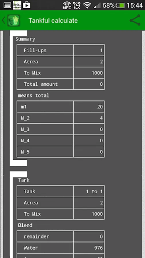 Syringes: Calculates the number of required injection barrels and is the mixing ratio of water and pesticides per barrel on .