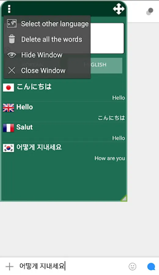 Translator using floating window for ease and speed of translation and the possibility of using window translator within any application