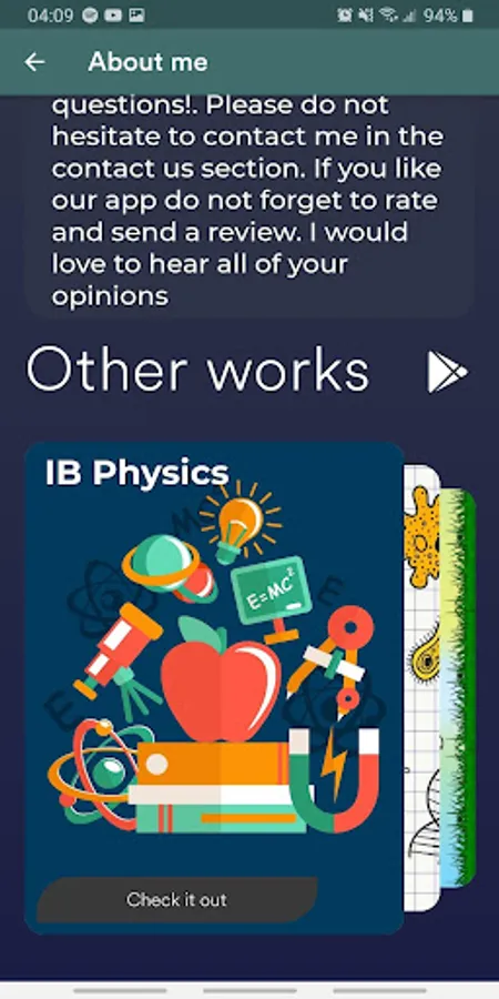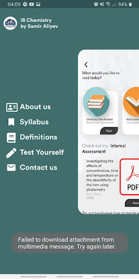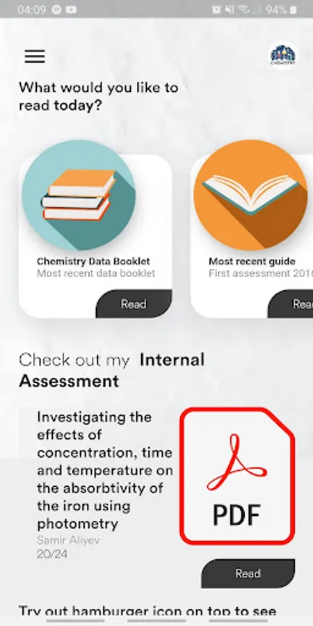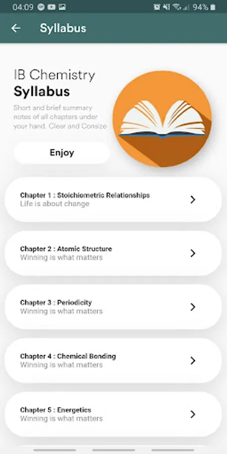 Very easy to use, free and education app that covers nearly entire Chemistry Syllabus. with a lot of Tests, Offline Information and Videos. It's very good for people who want to freshen their memories and bring back information that they have missed in class. It's cool when you can get most of IB Chemistry content with one click