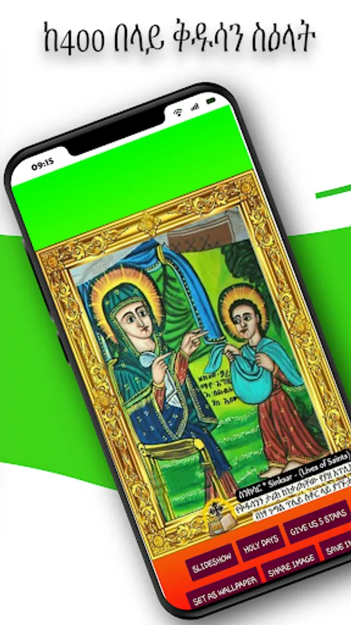 በዚህ መተግበሪያ ውስጥ ከ400 በላይ የቅዱሳን ስዕላትን በማንኛውም ጊዜ ማግኘት እንዲችሉ ካለ ኢንተርኔት እንዲሰራ በመተግበሪያው ውስጥ ስእላቱ እንዲካተቱ ተደርጎዋል፡፡