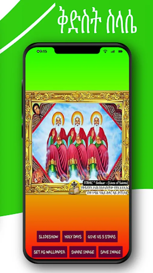 This APP contains more than 400 different Holy Pictures of Ethiopian Orthodox Tewahedo Church Holy Saints, Holy Angels, Holy Fathers, Holy Mothers, and Holy Pictures of God with a List of Yearly, Monthly Holy Days which are celebrated in Orthodox Tewahedo Church and finally the app contains a list of biblical name and their meninges.