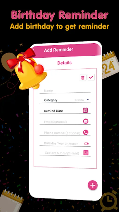 Set a Birthday alarm.- Birthday Reminder