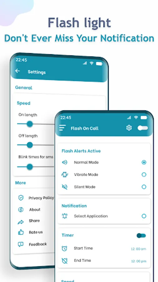 Flash Alert: Call and SMS application is a professional Flash on Call & SMS application that informs you when you get a notification of a call or a message in flashlight form. The usage of the Flash Call: Call Flash app is very simple and easy. There are three modes normal, silent, and vibration on which you can apply that amazing feature of Call Flash Alert: SMS Flash Alert. For doing this, you have to grant permission for using this feature. Without granting permission, you can't use this feature of Flash Alert on Call and SMS, so allow the permission first. Moreover, you can disable the flash alert for any particular phone's state if you want, so you will not get the flash alert for that particular model. In the feature of the advanced setting of Call Flash Alert, you can set the blinking time for a call or message easily as per your need. Also, Flash on Call & SMS allows you to set the "On Length" and "Off Length" of the flashlight.