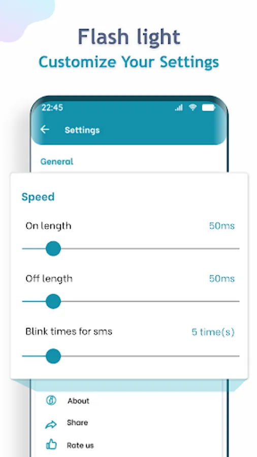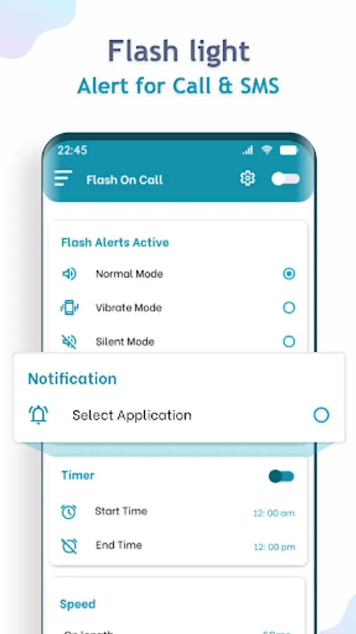 With the help of an advanced setting of the Flash Call Alert - SMS Flash Alert application, you can manually set the speed or frequency of the flashlight as per your need for incoming Calls and SMS.