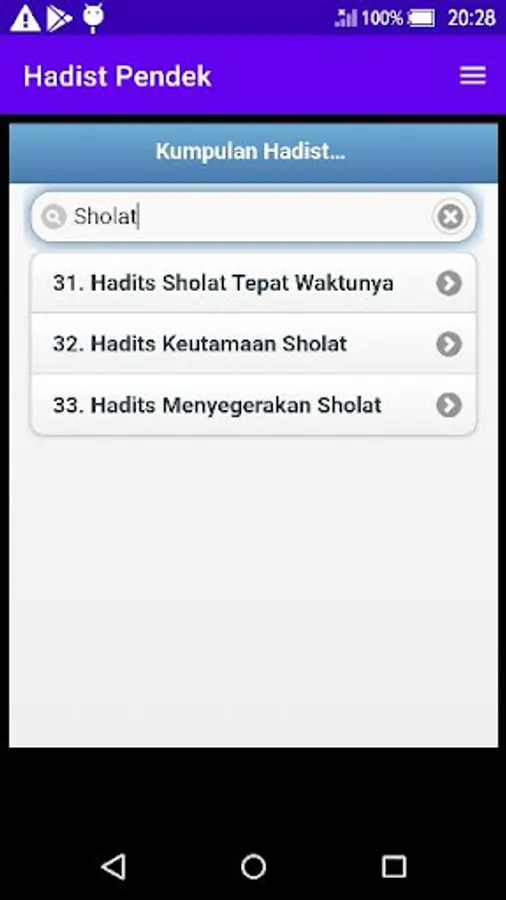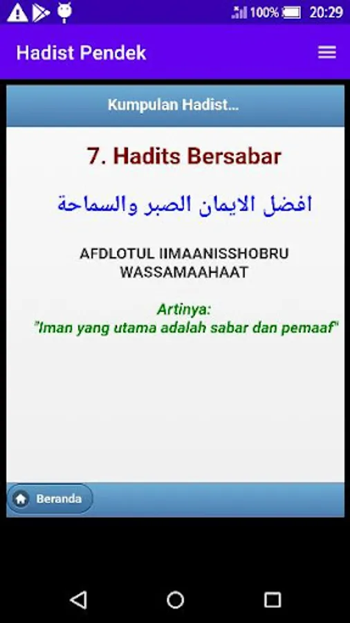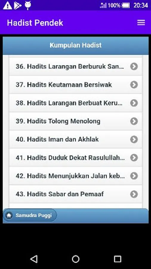 We present this short hadith collection application for free without restrictions with features including Indonesian text and translation and this application can be opened offline and other features are still under development.