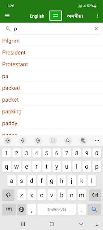 English To Assamese Dictionary is a dictionary for English and Assamese Language. This dictionary has search facility along with synonym.
