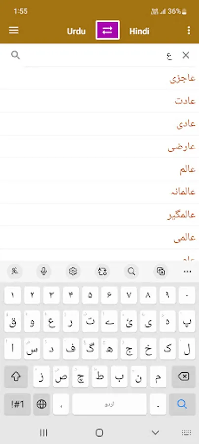 Hindi To Urdu Dictionary is a dictionary for Hindi and Urdu languages. This dictionary provides full search facility for different words in Hindi and Urdu languages.