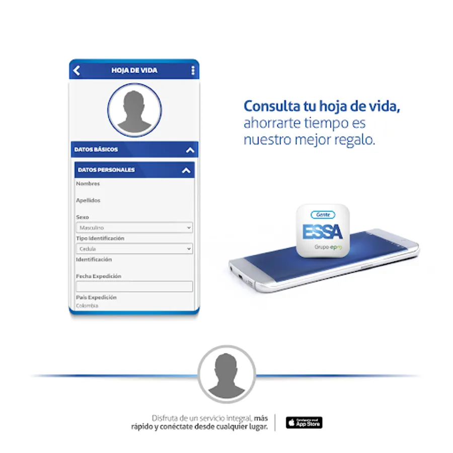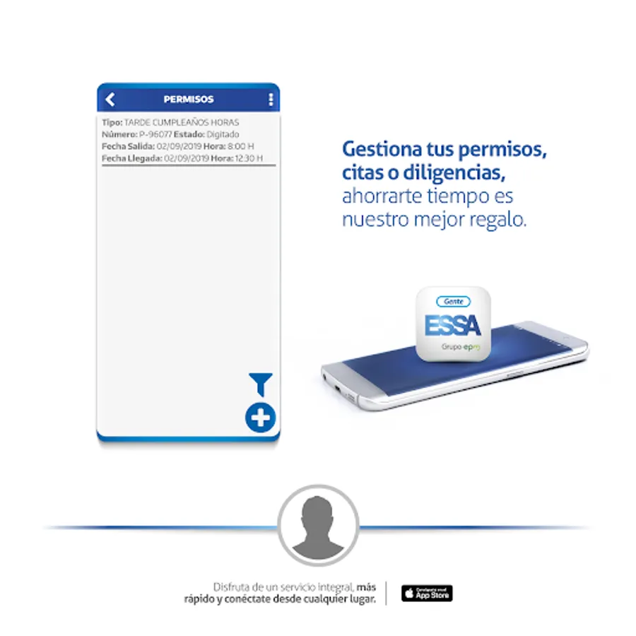 The Gente ESSA app is aimed at workers at the Electrificadora de Santander S.A. ESP. With it, it is sought that the worker can access and consult their personal data and company data from anywhere through a mobile device, at the same time that allows them to perform basic procedures with the company, generate reports and certificates.