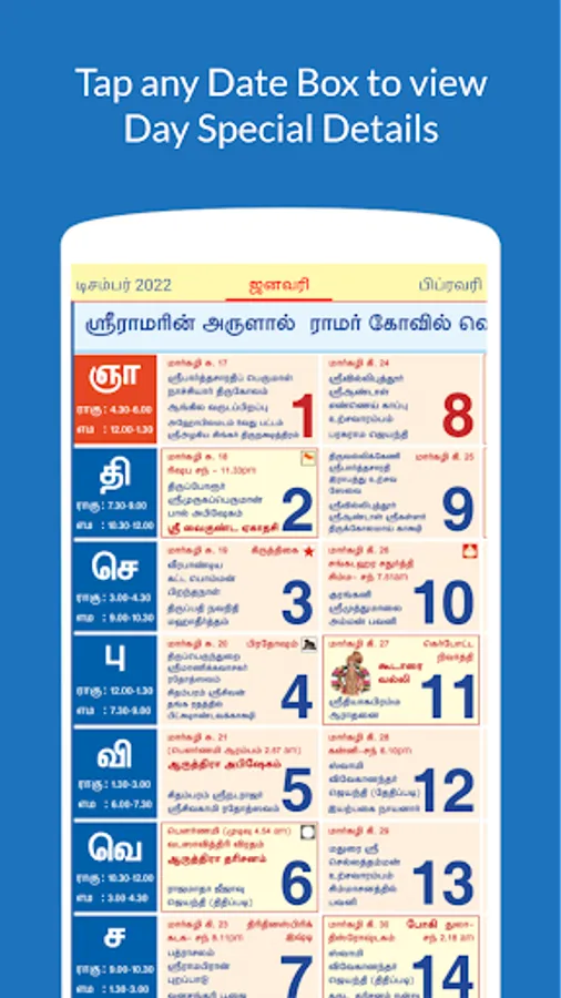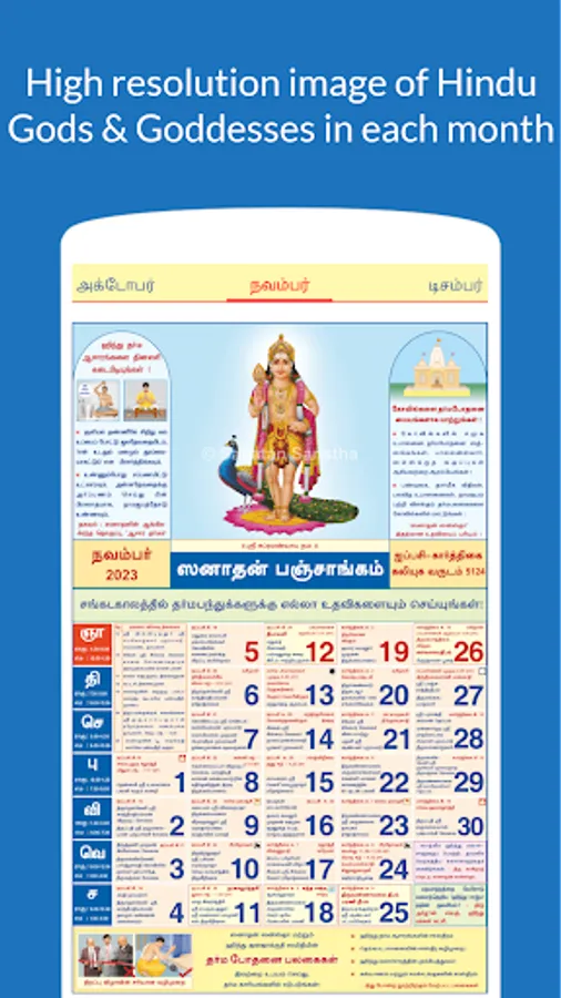 2023 Calendar App in Tamil for Hindus across the globe.