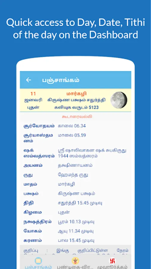 Sanatan Calendar 2023 (Tamil Panchangam) App Features -