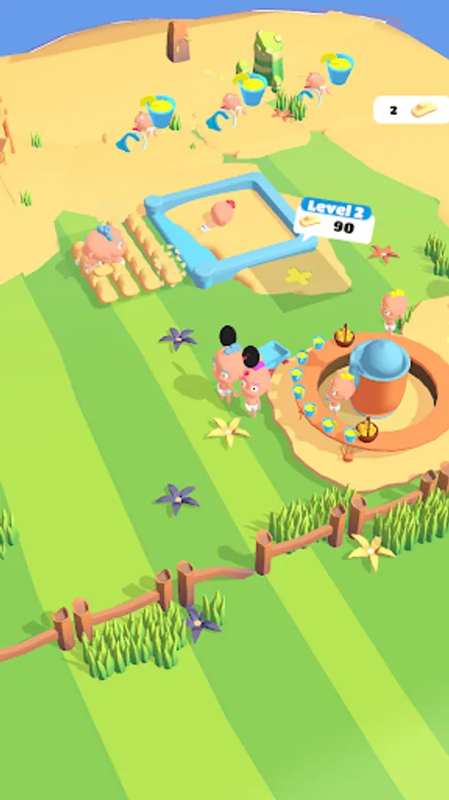Develop and manage your playground, mine resources, develop automatic production and create the most beautiful sand castle