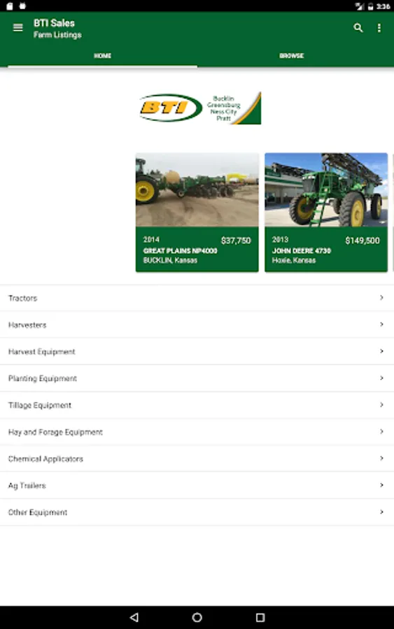 BTI Equipment is your Central Kansas John Deere Dealer providing used equipment solutions including combines, tractors, sprayers, planters and everything in between serving you from 5 locations in Kansas; Bucklin, Greensburg, Hoxie, Ness City, and Pratt.