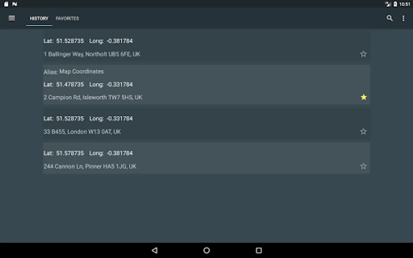 More recent features are „History” which holds all your locations history and „Favorites” which are locations saved by you with a touch of a button so you have your favorite destinations always right at hand.
