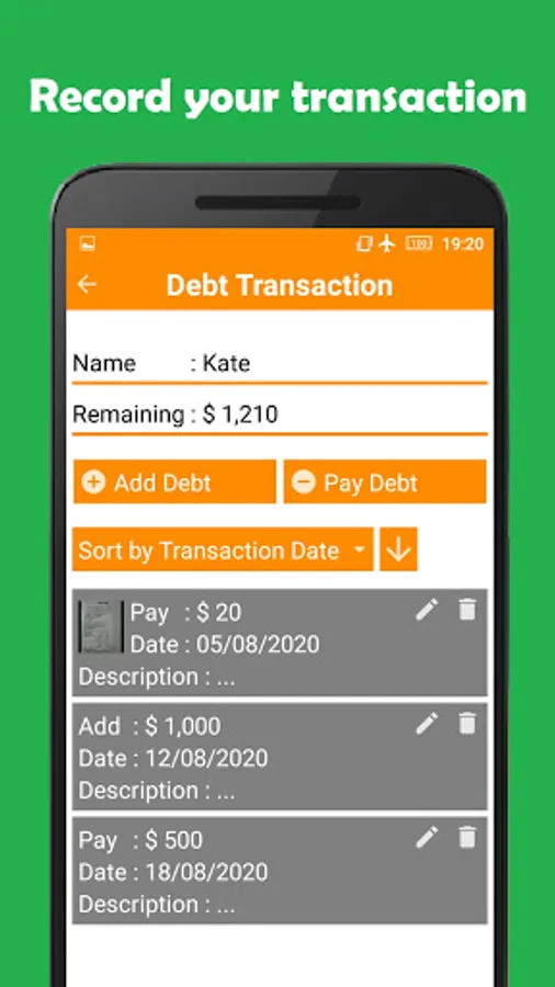 • Sort by name, remaining, amount, date start, due date, date created, and last transaction
