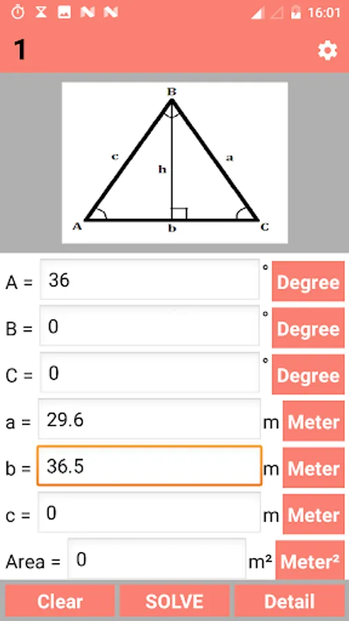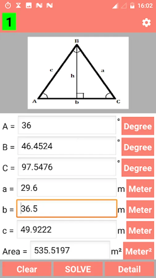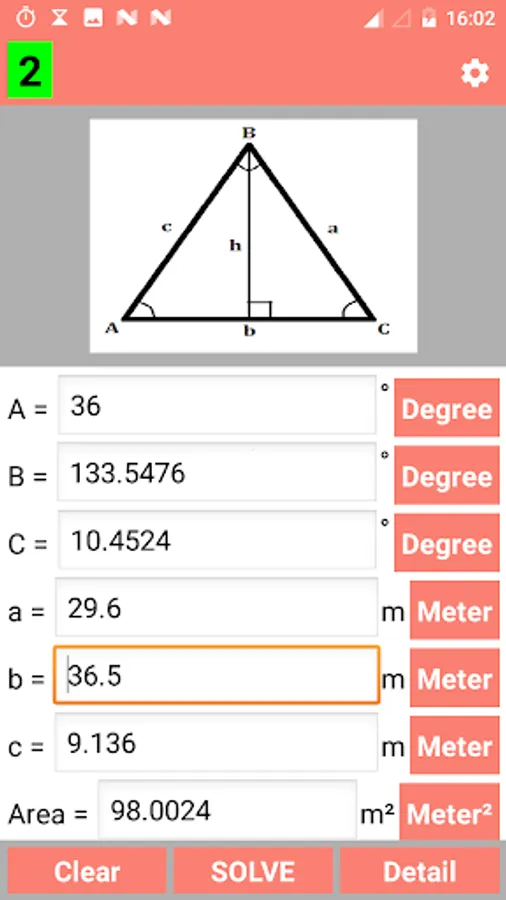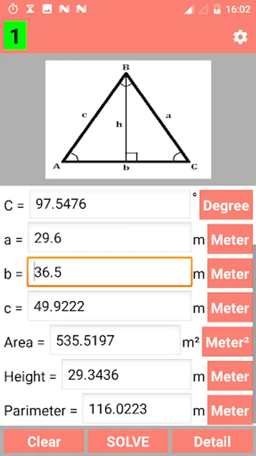 • Calculate Side, Angle, Area, Height and Parimeter.