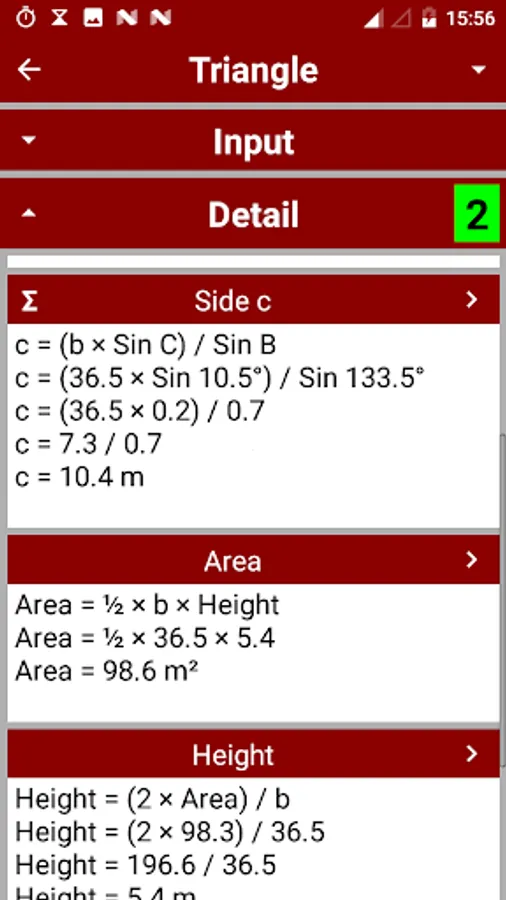 • Side, height and parimeter can be worked with Inch, Foot, Meter, Centimeter and Millimeter.