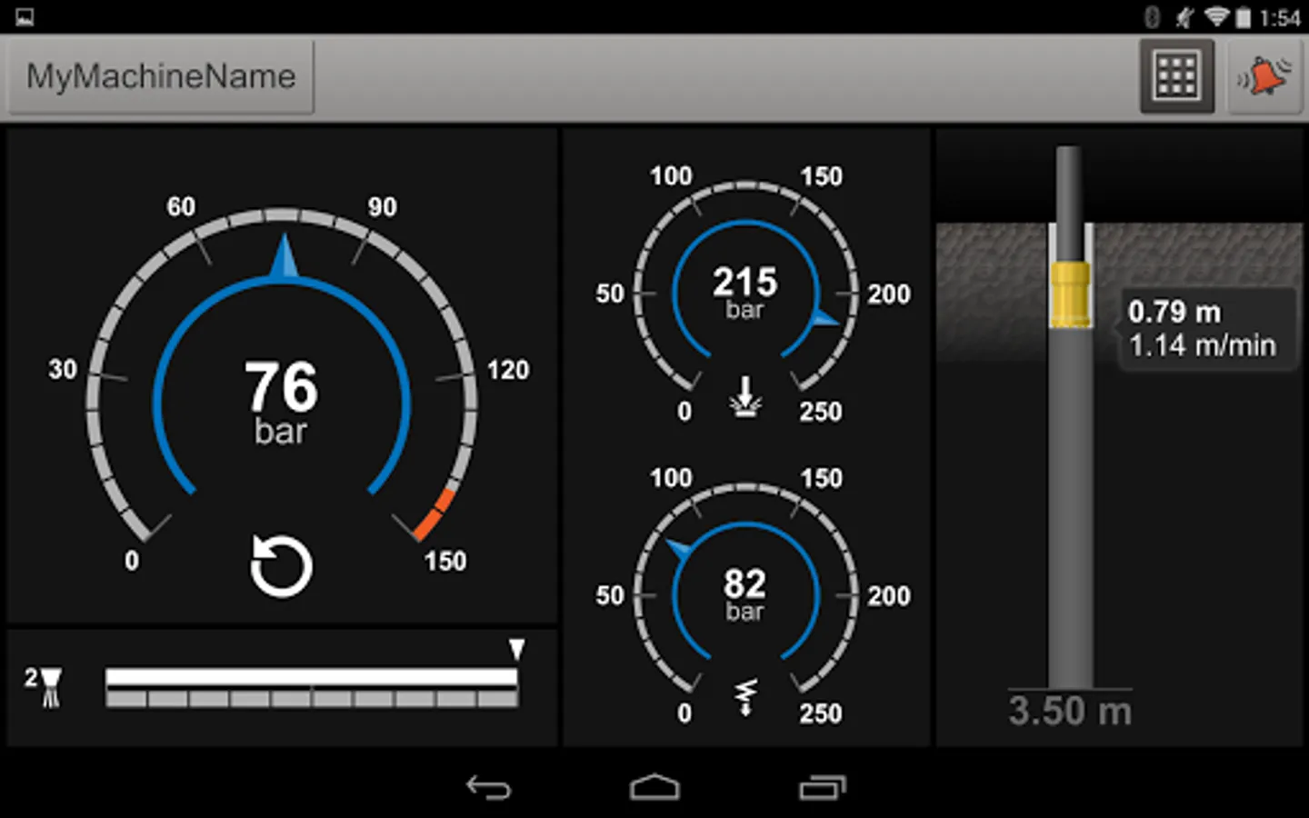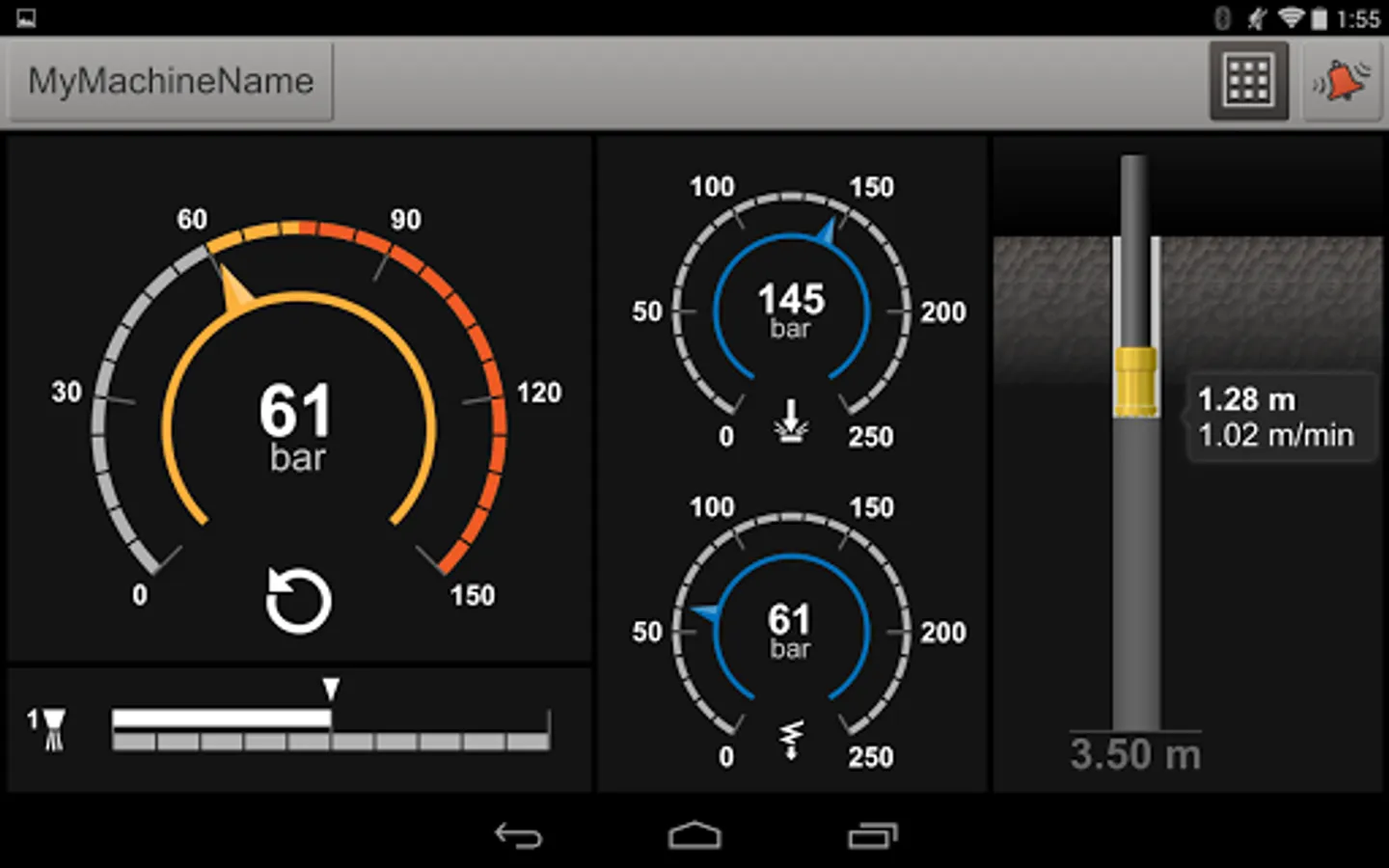 2. Drilling view for seeing the drilling parameters and progress of the hole