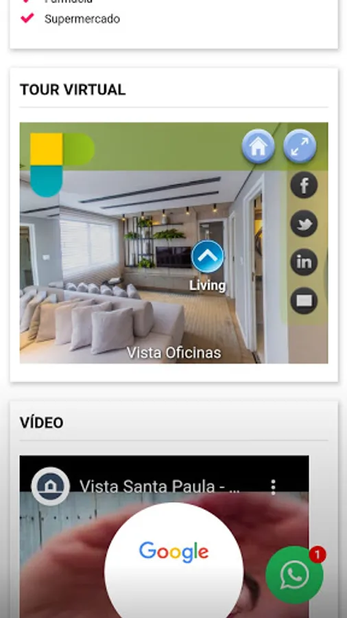 - Share properties by email and social networks;