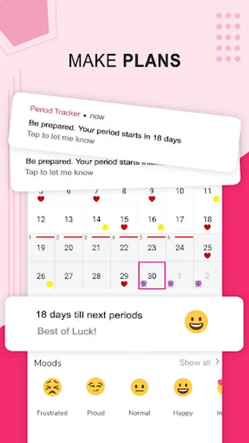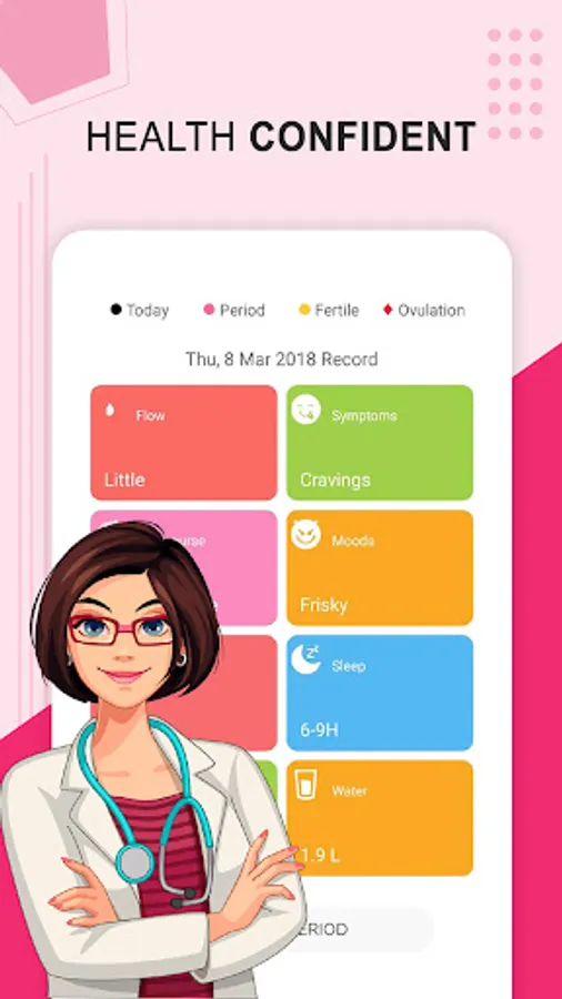 Our Menstrual Cycle is easy to use and offers everything you need: Track irregular periods temperature, weight, moods, blood flow, symptoms and more. You are aware and ready for your upcoming cycles, ovulation, and fertile days due to discreet reminders.