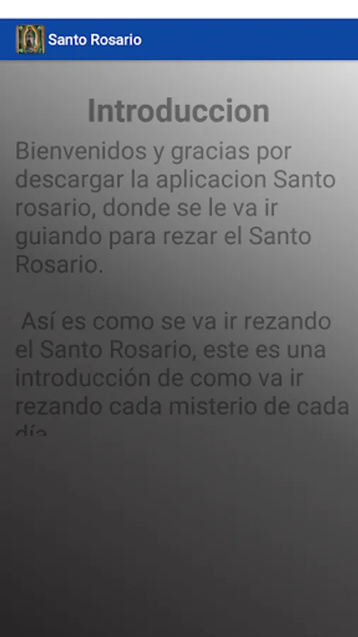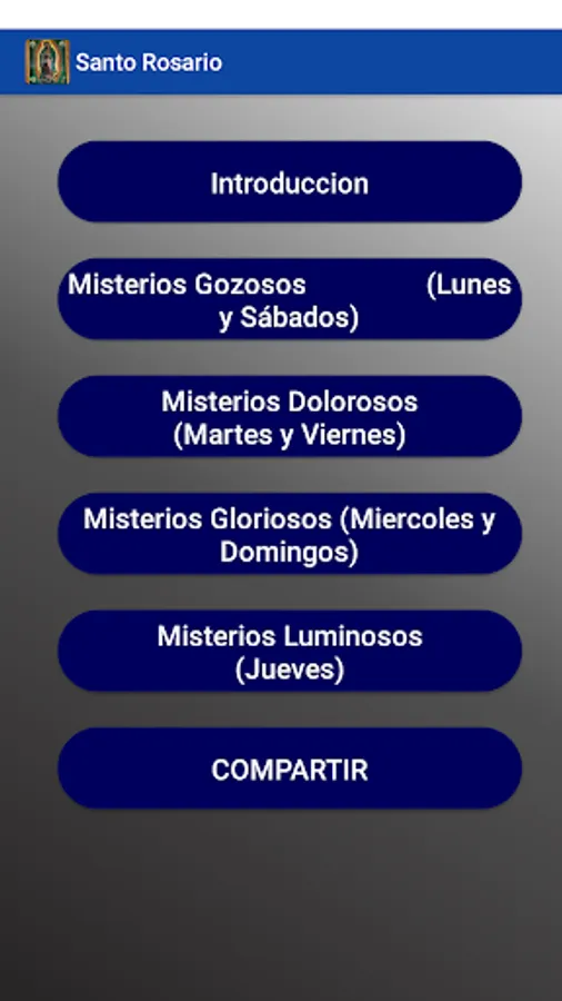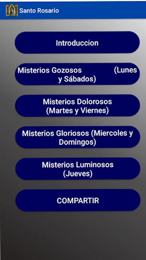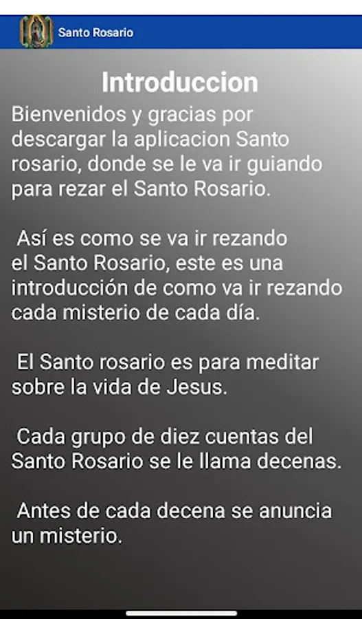 Learn to pray the mysteries of the Holy Rosary from the beginning, the mysteries of each day and you will learn how to pray. It only has the image of the Holy Cross and the Virgin of Sorrows, but don't worry, it will update over time.