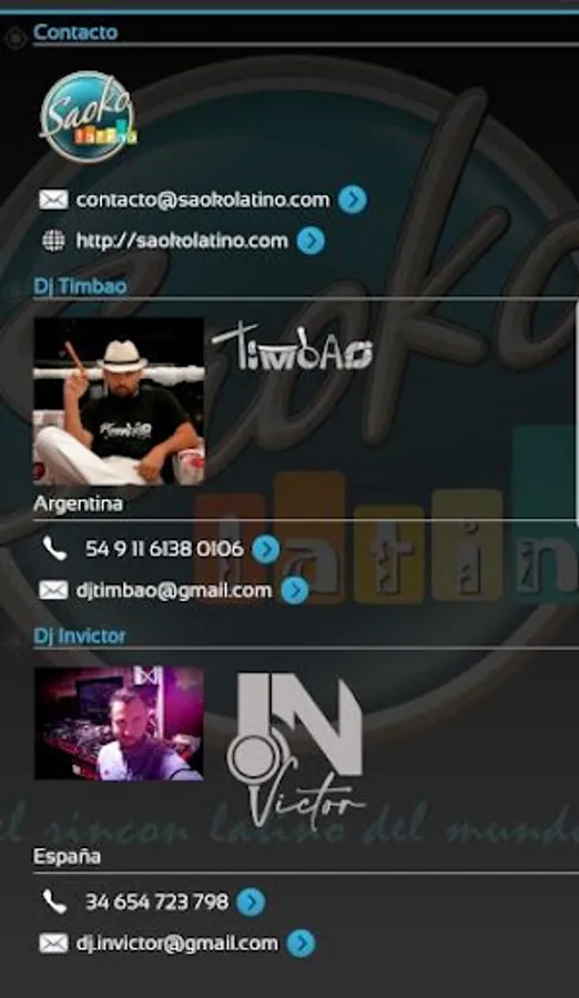 In addition to this in Saoko Latino you can have access to the Top 10 of Salsa and Timba of the best DJs in Europe and America with preview of the songs.