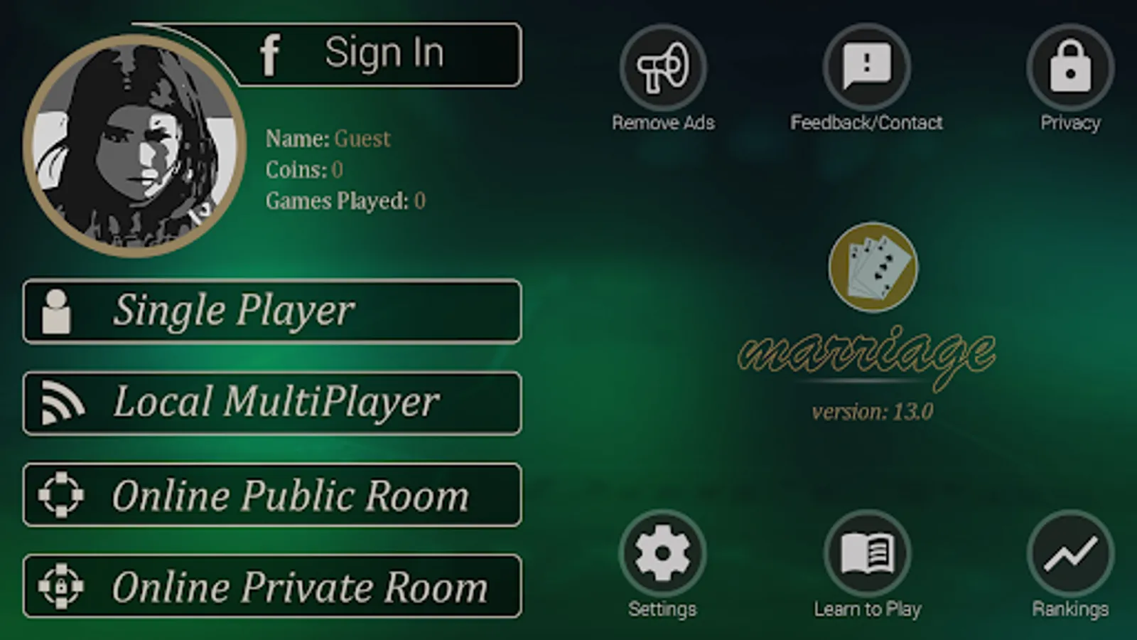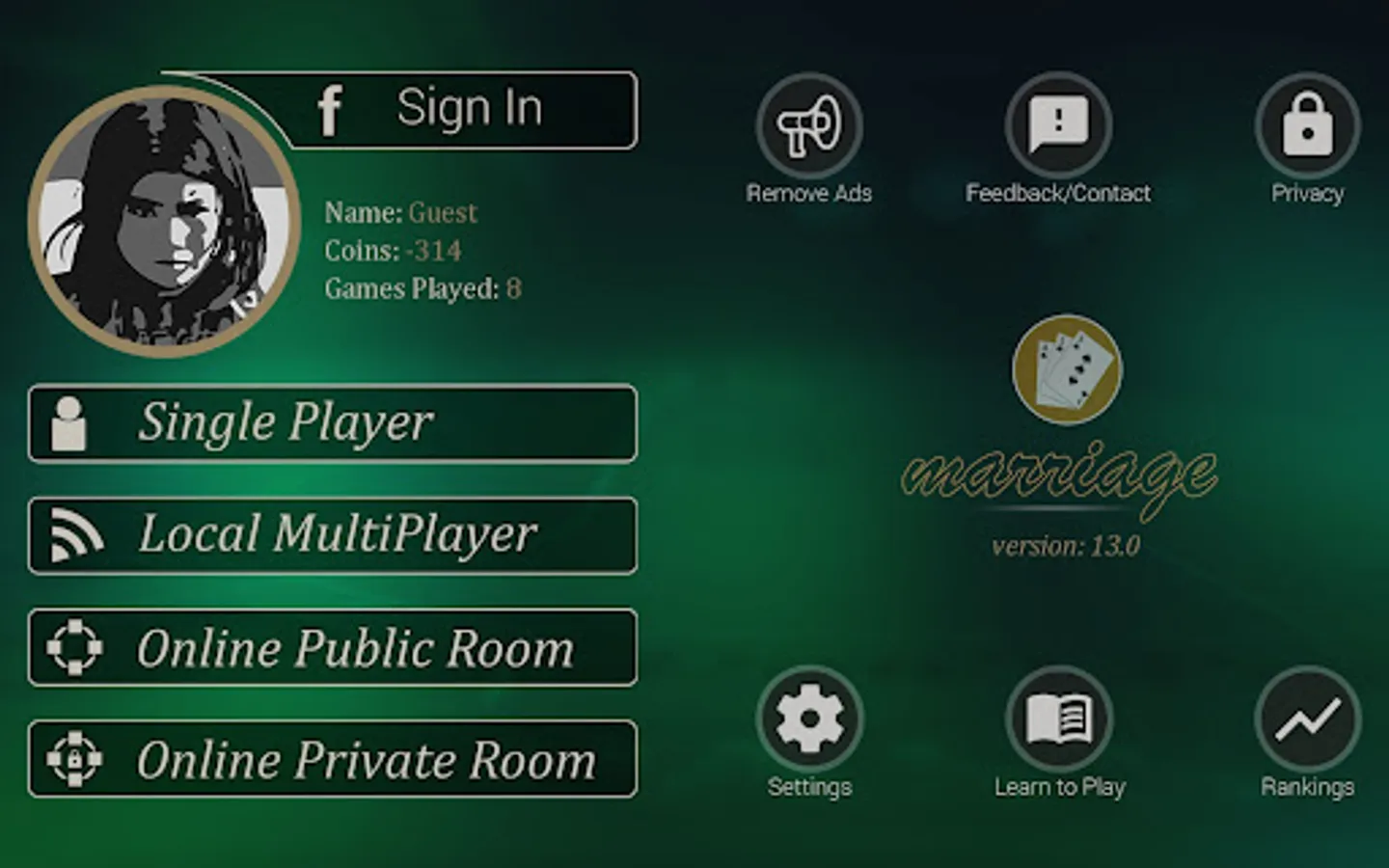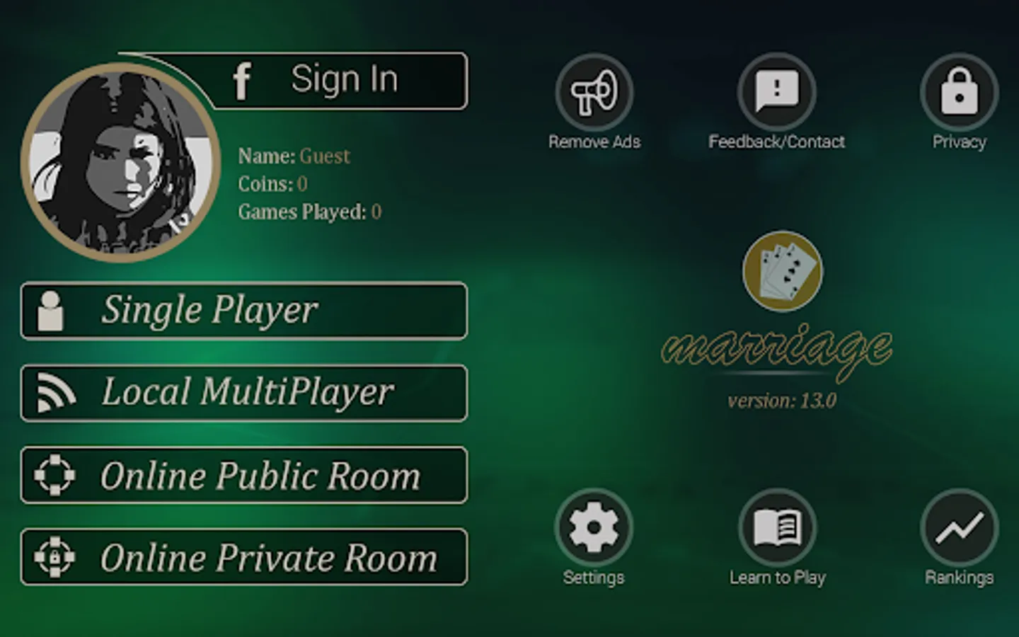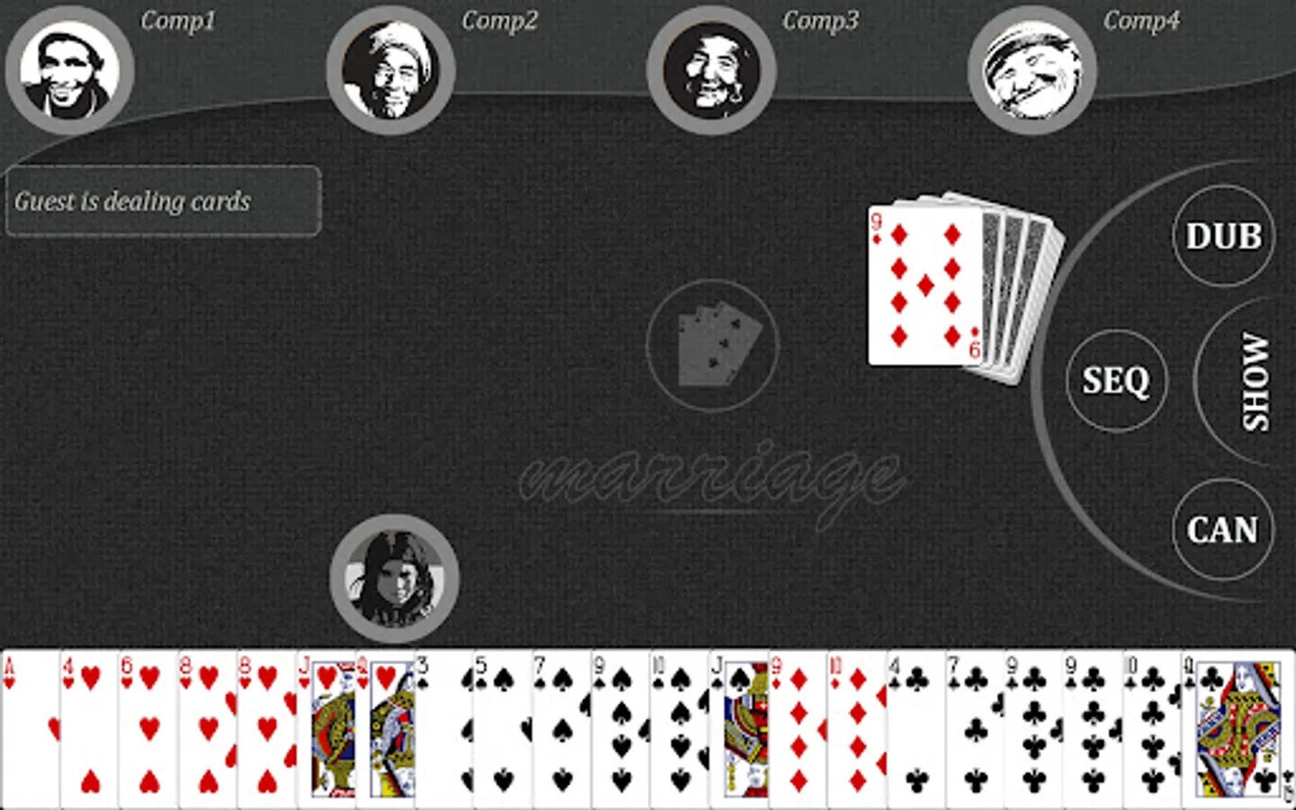 First Time in a Smart Phone , Marriage Card Game . play Single player , local multiplayer and online multiplayer