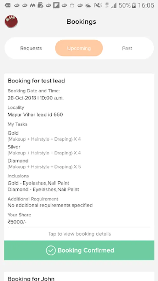 - Manage your booking journey: Update the status of your booking journey at each step - reached Venue, Start Job & so on.