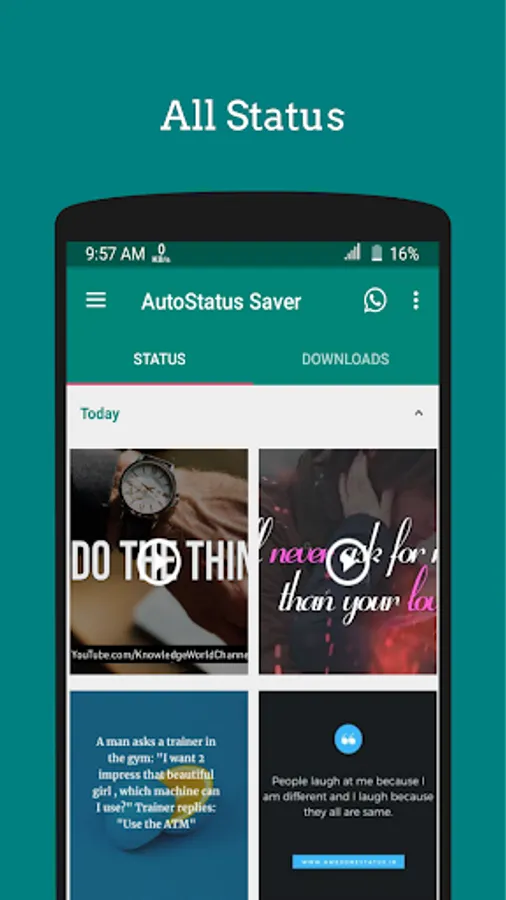 By using this status downloader app you can save, download any whatsapp images, videos, or post from WhatsApp video download that you love. Reshare saved whatsapp status. you can enjoy downloaded status photos and status videos anytime, anywhere, or share them with friends, or repost downloaded status to other social media. Install the AutoStatus Saver app and start storing the amazing statuses.