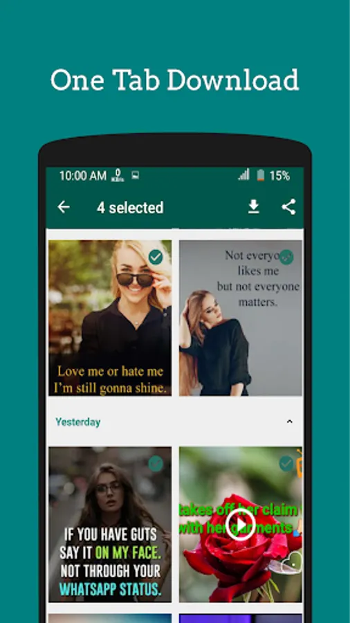 You can select as many statuses as you want and download them in a single shot.