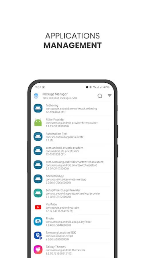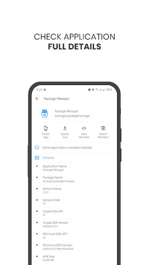 Package Manager is simple application tool which helps to get details about your device's application with some useful management operations.