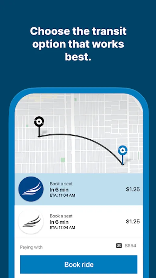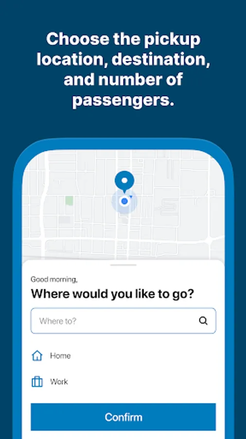 With a few taps, book an on-demand ride in the app and our technology will connect you with a ride headed your way.
